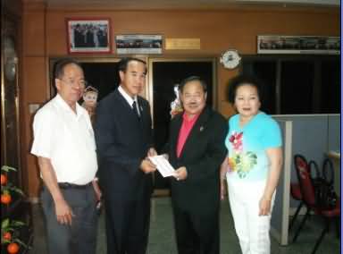 健清宗亲偕夫人罗萧旅紫女士向泰国罗氏宗亲总会捐助会务活动经费2万泰铢,并赠送"美国纽约州潮州同乡会"会旗。道楼理事长代表泰国罗氏宗亲总会全体同仁对健清宗亲偕夫人罗萧旅紫女士关心泰国罗氏宗亲总会会务发展的拳拳之心深表感谢,热诚邀请二位嘉宾明年3月上旬光临泰国罗氏宗亲总会创会四十周年庆典。