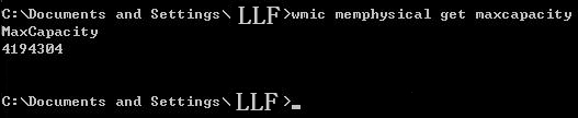 再输入wmic memphysical get maxcapacity,然后按回车键: