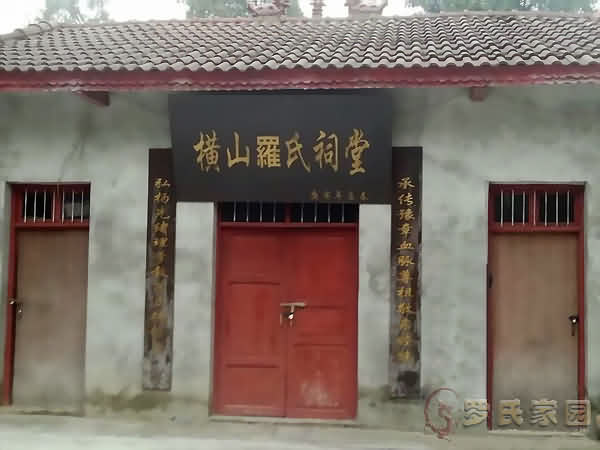 2012年8月,罗氏祠堂主体完工。祠堂长11米,宽6米,高5米,砖混结构房三间,红瓦灰墙,飞檐翘角,巍峨壮观,屹立于龙坪之上祠堂布局,中为正堂,正面设神台供列祖列宗神位,书楹联一付“修身酬国必读书创业兴家须尽孝”,横批:弘扬祖德。正门,悬挂“横山罗氏祠堂”金匾。书楹联“承传豫章血脉尊祖敬亲睦族弘扬先绪理学教子立德修身”(罗培成撰庚寅年孟春);左侧:悬挂罗氏祠堂简介右侧:悬挂皇山精神(祖训)。正堂左侧为文化活动室、右侧为宗贤馆