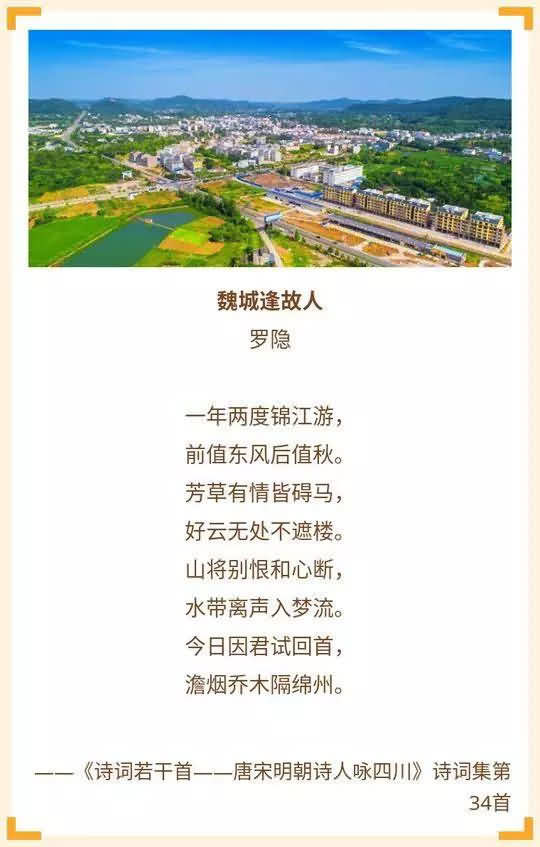 用张宗福的话来说,就《魏城逢故人》一诗而言,罗隐在魏城县遇到的故人是谁,姑且不论,但他以神来之笔,向故人隆重推荐“锦江”的意图是非常明显的,而他以“魏城”作题,也让此地千古留名。“这样的创作,在他吟咏蜀地的诗句中是常有的,堪称‘诗意四川’的广告名篇。”