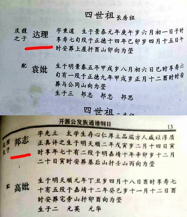 罗达理生于景泰元年1450,儿子罗邦志天顺二年1458,达理只比儿子邦志大八岁。八岁生子是不可能的。