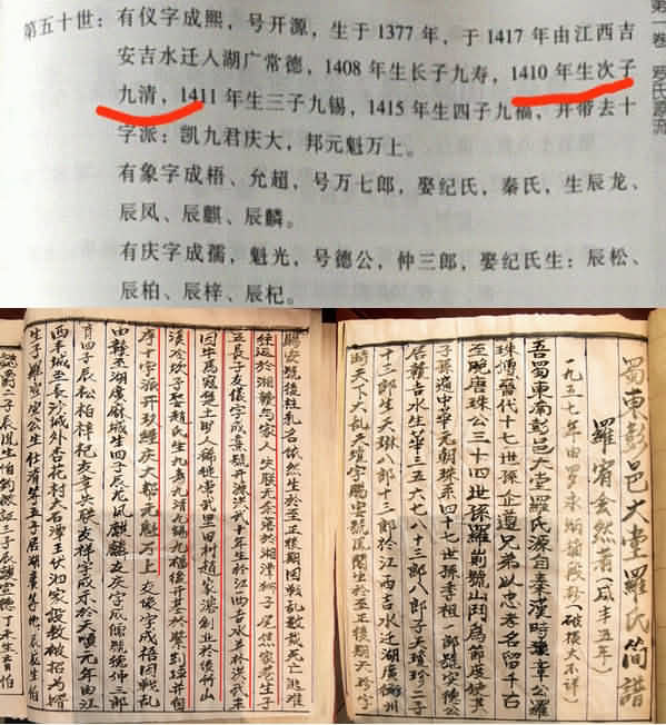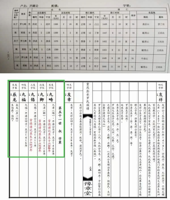 八、常德罗氏四修谱先祖生卒年记录存在问题,所以与彭水罗氏关于开源公由赣入湘的时间存在误差(21年)九畴九卿九锡三公生年与彭水罗氏记录出入40年的原因分析如下:
