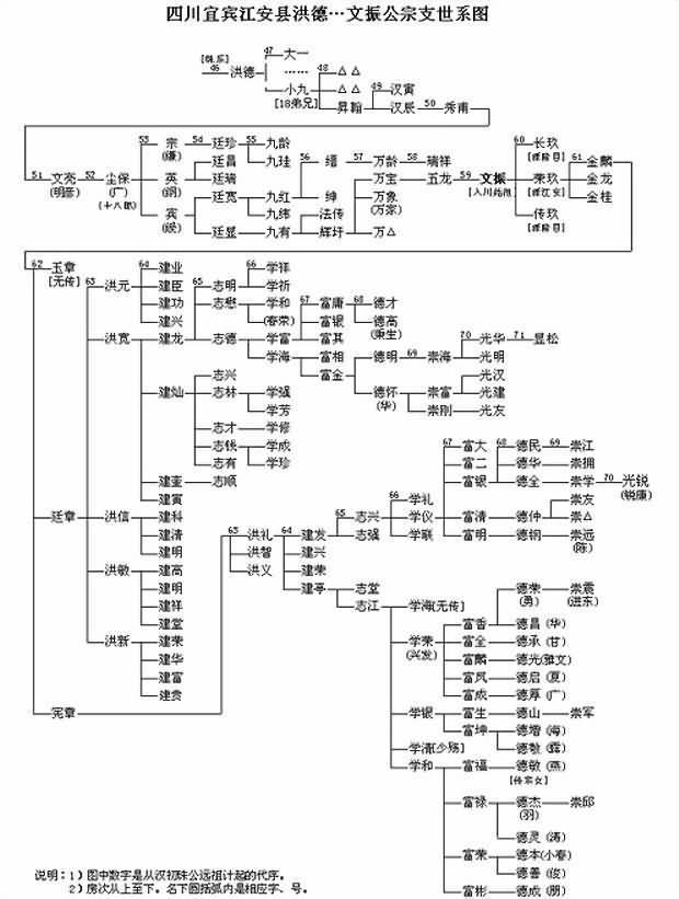 四川省江安县底蓬镇 罗富香 敬上000000000000 2003年9月23日00000000000000000000 (2)川渝谱编委慎重寻上源 根据富香族尊所寄族谱初稿、附言及电话传送信息,结合编委会所拥有的世系资料,2003年底,经初步考察分析,原谱所载本支最高追溯先祖“明彦”公,与待版《豫章罗氏川渝族谱》所载“崱”公后裔“铭通”公(生于广东惠州府龙川县铁场约金坑口,殁葬于兴宁县水口头岸)有可能系同一先世。2005年1月,富香族尊查考内刊《中华罗氏通谱》第六期《广东罗氏源流概述》(罗昆烈撰)有关“洪德”公支系资料后,又慎重给编委会反馈信息,建议重新审定世系衔接。经反复斟酌分析,前述可能性当予排除。本支族系当属洪德公后裔,因彼此有连续几代“字辈”、房数大体相合。其微小差异很可能是因事远年久,转抄不慎所致。