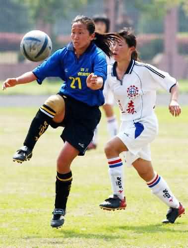 罗清秀(左)在第十届全运会女子足球预选赛南昌赛区的比赛中