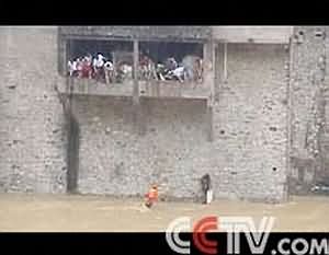 立即赶赴现场的张兴堂从高高的平台向下望到,被困人蓬头垢面、衣衫褴褛,像是一个乞丐。他呆呆地站在河床旁居民住房底部的阶梯上,丝毫不理睬周围人的呼喊。在脚下,七八米深的洪水水位还在不停上涨,而他却好象浑然不觉。