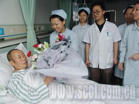 特大旱灾战胜了,罗嵩却终因积劳成疾,于9月9日住进了重庆市第二人民医院,当医务人员和病友15日得知罗嵩老人在抗旱救灾的感人事迹后,纷纷前往病房看望、慰问,向抗旱救灾先进个人罗嵩敬献鲜花,鼓励罗老战胜病魔,早日康复出院。