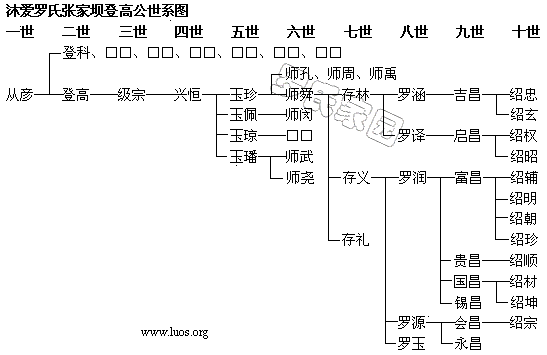沐爱罗氏张家坝登高公玉珍长房世系谱系(师舜──存林支)