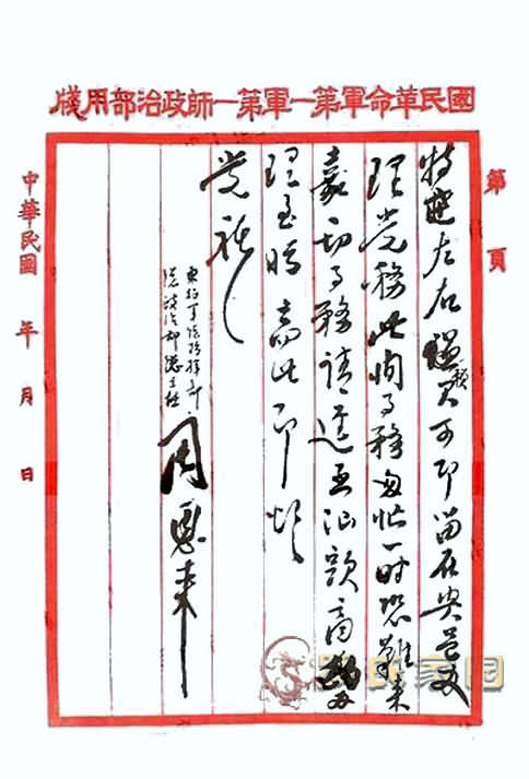 周恩来给兴宁县长罗师扬的信 1925年2月1日,广东革命政府举行第一次东征,周恩来以黄埔陆军军官学校政治部主任身份,参与率领军校校军出发,参加东征。3月,东征军打垮了陈炯明的主力并攻克兴宁。周恩来了解到在任县长罗幼山(号师扬)治理兴宁政务有一定的成绩,同时,命令罗为东征军筹措军饷2万元大洋。罗在短短几天内筹足2万元大洋,以实际行动支持了东征军,周恩来极为赞扬。5月,罗因年逾花甲,精力不支,呈请辞职未获批准。后周恩来得悉罗仍有辞意,乃于11月中旬在汕头专函致罗表示挽留。信托当时的国民党员赖志尧返兴时带回面交,全信279字,诚意深刻,感情炽热,悲愤交集,爱憎兼发,溢于言表,耐人寻味,极富革命情谊和感染力。其行草书体,柔刚并济,流畅大方,全信共3页,每页长34.4厘米,宽21.7厘米,信笺为米黄色玉扣纸,原件存上海革命博物馆,兴宁博物馆保存有复印件。