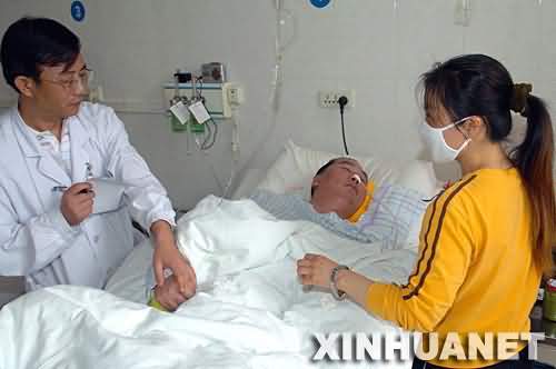 5月31日,罗映珍在医院向医生了解罗金勇的治疗情况。新华社记者 王长山 摄