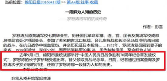 B.《绵阳日报》:2016年4月17日A4版:一段鲜为人知的历史──罗怒涛将军的抗战传奇