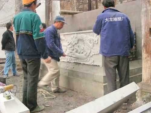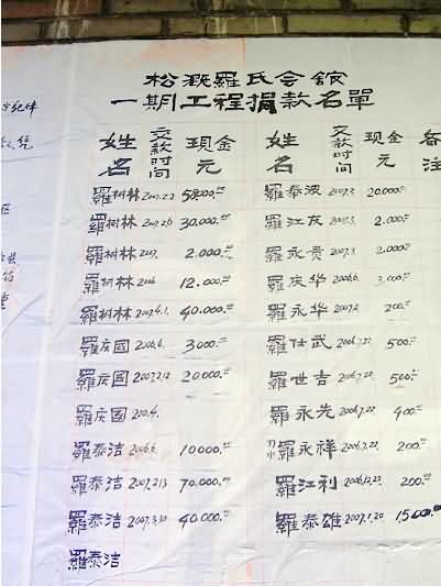 图片说明(从上至下,点击查看大图): 修复的罗府祠堂正殿大门 恢复的书楼戏台 修复罗府祠堂一期工程捐款名册(局部) 罗府祠堂修复庆典 神位底座青石大龙浮雕墙施工 |