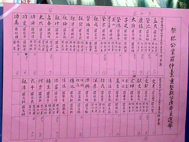〖台湾克章公网消息〗以拥有相类似之《大明万历三年流传世谱序》的后裔、自认为同祖源而结合、二百余年罗氏脉衍相承的祭祀公业罗仲素之台湾民间组织冬至会,于四月十九日下午召开“祭祀公业罗仲素重整期派下员暨代表临时大会”,选举产生台湾祭祀公业罗仲素重整期管理委员会。