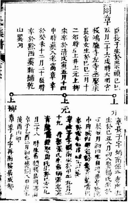 2),《康熙播州忠爱堂锦水分支敦睦堂罗氏族谱》载:上元,章次子,字殿南。娶张氏,生希柄。张卒,继娶周氏,生希模,移居同梁。上柳,章季子,字再南。移居成都。