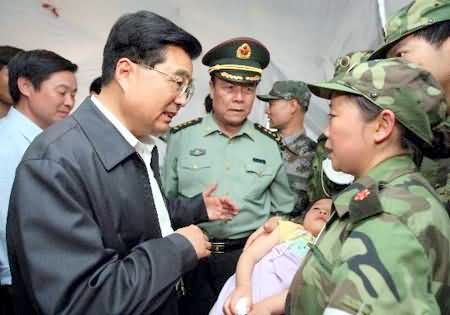 施救。胡锦涛焦急地询问营救情况,得知还有300名师生被埋时,他坚定地说:“当务之急仍然是救人,只要有一线希望,我们都要千方百计地