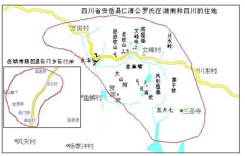 3、用同样的方法还作了仁清公在湖南和四川的住地周边关系图: