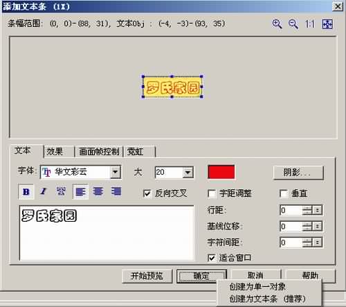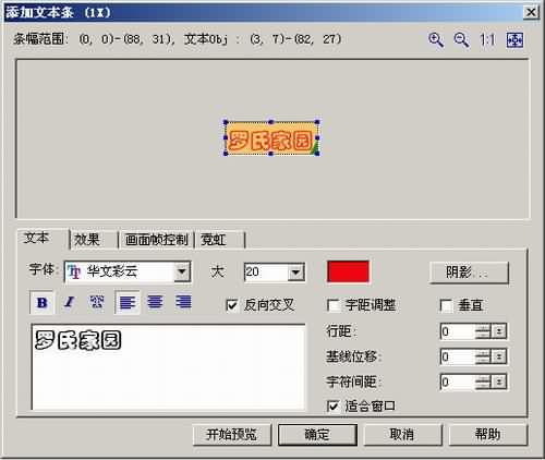 2,点击祯→添加条幅文本,弹出如下对话框: