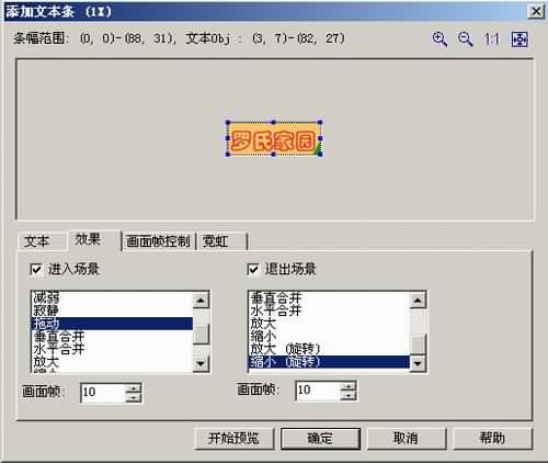 通过“开始预览”看看整体效果,不行再改。如果只一条文字,设置就完成了,如果是多条,每条都重复上面的步骤,不再赘述。