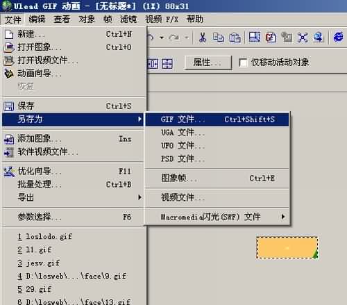 1,打开ga_main 动画编辑器,新建一个88X31的空白图象, 添加你预先制作或选择好的背景图片: