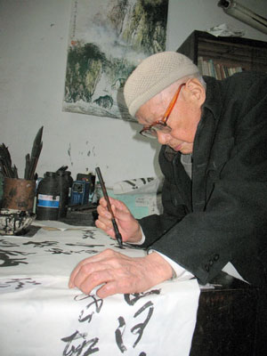 90岁的老人,言谈中思路一直非常清晰,他还在家人的帮助下,向记者展示了他的书画作品:建国纪念、毛泽东、周恩来、邓小平诞辰百周年纪念、“神五”升空纪念,王羲之、吴道子、苏轼、田锡纪念、长征胜利70周年纪念、南京解放56周年纪念、抗日战争60周年纪念、建党85周年纪念……画幅展现了一个世纪老人自从平反后的心路历程:也许身姿不再矫健,不能为党做贡献,但是跟党走的心不变。