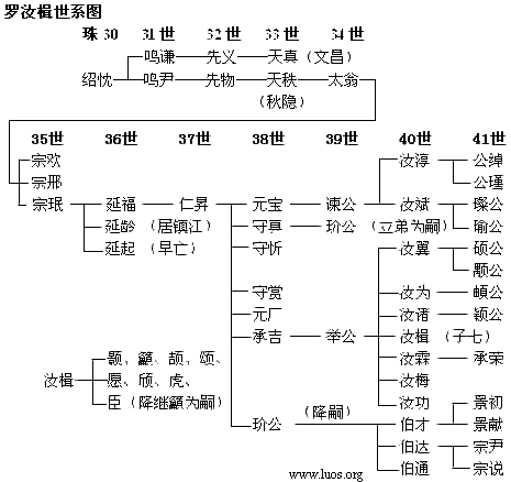 罗氏,本颛顼帝末嗣,受封罗国,今房州是也。后为楚所灭,子孙因以为氏。其望长沙,今豫章是也。来来绵邈,莫之或稽,簪缨阀阅,代弗凋瘵。自九世祖由洪都迁于新安,今数百年根茂实蕡,第第传远,执经鏊敌,靡世无之。余欲系谱以永其传,未之克遂,近始得之族长略而不详,因以搜索,次第鳞列,庶俾披图,益崇敬此长慈幼之风,雇不伟欤。