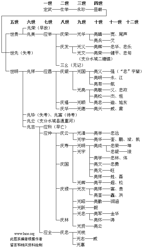 定武──仕举──永珍──显朝──世明──兆云(赫章县兴发乡罗氏之第六世祖)