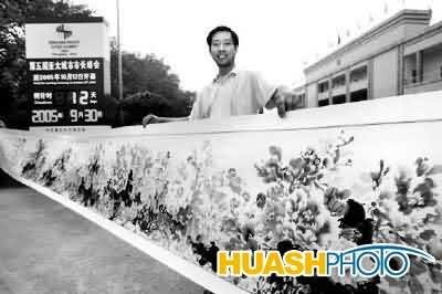 重庆著名青年牡丹画家罗礼明 罗礼明,男,1966年生,重庆江津人。虽生于普通农民家庭,却自幼酷爱绘画,理纸磨墨,耳濡目染,竟渐渐地迷上了书法和绘画艺术。他先后毕业于成都美术学校、四川美术学院等,受教于魏功钦、李冰泉、刘元红、王怀平、张银珠等名师。在学习和实践中,他刻苦学习,寒暑不辍,在他的绘画艺术生涯中负重前行。随着时间的推移,改革开放的大潮把他推向了艺术生命的浪尖,他毅然离开了日出而作,日落而息的故土,迁徙重庆主城区──巴南,继续延伸着他的国画生涯,平常靠画炭精肖像画以及卖国画养家糊口。现为中国书法美术家协会会员、重庆市美术家协会会员、巴南区美术家协会会员、世界和平女神香港基金会书画艺委会副秘书长、徐悲鸿故居磐溪画院画师、华夏国书画院高级书画师、云篆山书画院专职画师、沧白书画院理事……… 罗礼明擅长工笔,写意花鸟、人物、山水,主攻牡丹。早在九十年代,罗礼明画牡丹的消息就不胫而走,远播八方,但他一直没有停步,愈下苦功,在“继续努力”上下工夫。他画牡丹,绝不一味临摹他作,更不为传统画法所困,而是深入生活,仔细观察研究牡丹之枝影扶疏,风情雨露中的变化。他在实践中请教群众和同行,请教关于牡丹的种类、形态、习性等知识,还亲自去洛阳、垫江等牡丹之乡实地考察,或写生、或拍摄,观察细致入微,点点滴滴涌如笔端。他的作品分别被美国、英国、阿根廷、日本和台湾知名人士吕凤子纪念馆、陈独秀纪念馆收藏。其作品《国色天香》、《富贵吉祥》分别在全国“西部之光”和邓小平诞辰100周年“世纪伟人邓小平颂”艺术交流会荣获二等奖;《国色争艳》、《万花一品》在第十一届当代文学艺术创作交流会荣获国画金奖;《碧玉玲珑》在庆祝香港回归十周年和重庆直辖十周年文艺创作交流会荣获国画金奖;2005年作品入编《中国当代书画名家名作典世藏》、《中国书画家全集》,并荣获金奖。他的作品还入编《当代中国杰出文人书画名家创作精典》,被授予“中国当代文人书画家”称号;2005年喜迎亚太城市市长峰会创作8米长的《和平吉祥图》被重庆时报、重庆晚报、巴南电视台先后进行专题报道;作品业绩在《世界书画报》、《重庆老年风采》、《巴南文艺》等多家传媒作过报道。其作品也被选送省、市、国家级展览并获奖,成为爱好者的珍藏品。 罗礼明憨厚诚实,虚心好学,德艺双馨,热心公益。2005年10月11日~14日, 第五届亚太地区市长峰会在重庆召开。为向峰会献礼,罗礼明历时3个月时间,画了一幅长8米,装裱后宽80厘米的巨幅牡丹图,用“8”这个吉祥数字代表欢迎来自八方的宾客;100余朵牡丹代表100多个参会城市;鸽子代表和平;穿插喜鹊表示报喜;蝴蝶也翩翩起舞表示欢迎远方客人。画好后,重庆市著名书法家魏功钦老先生为其题款“和平吉祥图”,并赋诗,“国色朝酣酒,天香夜染衣”。这幅长画,光装裱就花了近1000元钱。 |