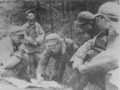 | (罗立斌<中间>1951年在朝鲜战场三八线上) |
