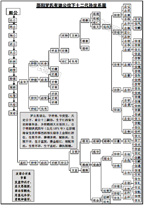 湖南邵阳罗氏友谅公世系概况