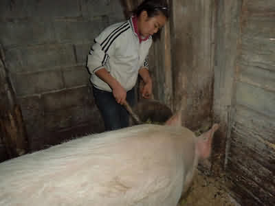 随后,罗春梅利索地砍起柴来。这一捆柴,似乎比自己的体重都重。然而,对于已经扛起一个家的罗春梅来说,这点重量已经早已习惯了。和记者聊自己的故事,罗春梅时不时地就“咯咯咯”地笑起来。种地、喂猪、担水……这些农活,罗春梅早已经是老手。