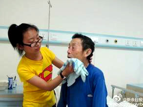 父女情深 5月8日,记者在新余四中校园里见到了罗美荣。这个戴着眼镜、长相清秀的女孩并不避讳自己的身世,谈起往事,她总是微笑;而提及养父的病情,她则连连轻叹,眼角微红。 16年前,年已55岁的罗发德想领养一个孩子。妻子理解他:丈夫是家中独苗,半岁时母亲去世,8岁时又失去父亲,直到30多岁时才和身有残疾的妻子组成了家庭,家中没个孩子的确少了份热闹。就这样,办过领养手续后,罗发德夫妇从珠珊镇敬老院抱回了弃儿罗美荣。 “或许是缘分,我和女儿的生日都在6月,我6月3日,她6月23日。”回忆起父女的第一次见面,躺在病床上的罗发德尽管脸色蜡黄,面容憔悴,却呵呵地笑了。到家一两个月后,孩子很快学会了叫爸爸妈妈,夫妻俩放下心来,从此把全部心思放在女儿身上。 妻女双全的罗发德从此看到了人生的希望。虽然年过六旬,他仍觉得充满干劲,种稻种棉,外出打零工,一年下来没几天空闲。即便如此,这个家依然清贫,难有积蓄。转眼间女儿长大成人,全家三口还挤住在那间已住了几十年的老旧土砖房,一台用了多年的黑白电视机也是亲戚送的。 但罗发德不觉得苦,只担心女儿受委屈。同龄人有的玩具,他一定想办法买来;以前舍不得吃的荤菜水果,也总是隔三差五买回家;女儿喜欢看电视,罗发德咬咬牙花300多元买回一台翻新的14吋彩电。夫妻俩的心血没有白费,女儿多年来乖巧懂事,学习用功,顺利考入一所省重点中学。