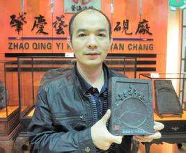 罗氏家族以砚艺传家,至今传24代。罗氏家族明代以雕刻山水著称的有罗发、罗澄谦二人。罗发又名苏虾发,东屯乡二图九甲人(今黄岗白石村)。他善以轻力浅刀雕镂山水。罗澄谦是罗发的侄子,擅长雕刻山水、人物、龙凤、鸟雀、松竹、花卉。所雕刻的名砚有描绘《西厢记》的“借厢”砚、“听琴”砚、“酬柬”砚等。人物精美,毫发毕现。明代就有人写诗称赞:“君不见端城澄谦刻砚石,毛发须眉皓如月。”(上图:端砚工艺美术大师罗海)