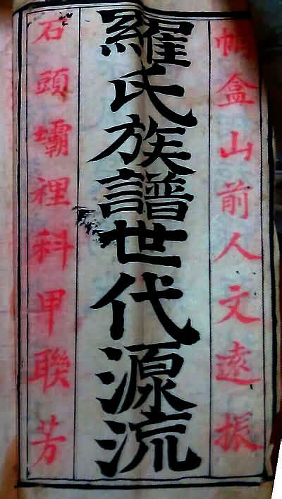 四川南溪江南乡石头坝罗氏福寿公族 (残谱整理,别字从原) 述前往事,绍元之子罗荣安识谱 眼同胞叔,三房绍升会语相其谱 长邑国学,南邑训师徐兴璋抄录 时大清同治十三年甲戌岁孟春月之初十日谷旦,在南邑大水井居住,同造其谱。遵依大明老族谱,年深月远,字迹差讹,从新抄录,使后世子孙能克肖斯文者,务须珍宝此谱,付相传代,永远无失。勿为作视不礼,自取罪戾。