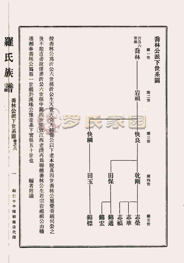 元良本道贞,仁厚维家庆,世泽永延长,声名常继盛。 ●乾隆四十六年谱序 (之一) 常闻颂纪生商,发祥本玄鸟之庆,雅歌肇室,生民拟瓜瓞之绵,古人以得姓受氏也,夫固有所之来矣。今吾家罗氏,原籍江西吉安府吉水县,旗形也,称豫章望族。江东流徽及収罗于族氏。谱笺之书则载我罗姓之辍巍、科登显仕、累朝之相国名卿不乏之人。然无谱牒可稽,岂可得而妄指之曰。某人系吾宗、某人是吾祖耶,然幸略得其传。始祖;志荣、志华、志祯公于前明洪武年间,自江西吉安府吉水县落业于天柱县三啚闭寨衍裔迄今,代传一十五世,岁历四百于年。至于本朝康熙年间,又散处四川湖广各省者大半,而守土者亦繁昌多矣。再芶少谱牒流传,不千百世下,久之而亲者疏,又久之而疏者远乎。嗟呼!世系之少传乃子孙之不孝。才世何祖宗之灵庇忝在宮墙,毎以此为愧恨无如有志来隶耳。茲幸乾隆辛丑岁(即公元1781年),有吾族侄罗帮齐、邦爵、邦信自西蜀潼川府安岳县归家省墓与余聚首,叙及修谱一事,余乃欣然乐从曰:此孝道也、亦美举也。余等亦有心久矣。用是相约通族,将始祖志华公以下一十五代汇集成草谱一帙,流传于后,庶使后世子孙绵绵瓜瓞。纵有支分派别之殊,也都越囯之远,而按谱以稽、则親疏不紊,尊卑无淆,而粮莠可杂于嘉禾,夷稗犹可混于美种乎。更冀后之贤子孙辈曲体。余等一片婆心,倘由此而合,刊大谱建立宗祠,又岂非余辈之所愿望也哉。爰述所由,以序共端,敬抒管见,以为之倡云。文章作者罗良富