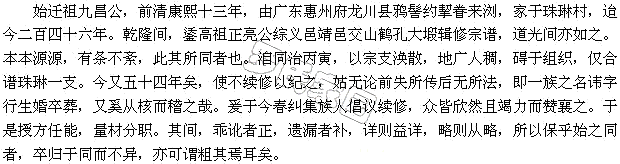 族谱之关系重矣哉。缅我罗氏之先,祝融公而下,君用公而上,代衍百二年历数千,代远而年湮,其详不可得考也。及汉大司农令珠公守九江,辟豫章沟筑城而家,是豫章自汉始矣。至今罗氏以珠公为一世祖,盖其所同者也。自汉而迄明,忠于晋,昌于隋,宾兴于唐宋,凡豫章之子孙,近或散于庐陵吉水,远或徙诸袁赣瑞临,远之又远,则湖之南北,广之东西,川陕滇黔,极之迁居异域者,罗氏之裔几遍地球焉。本文belongto罗氏家园
