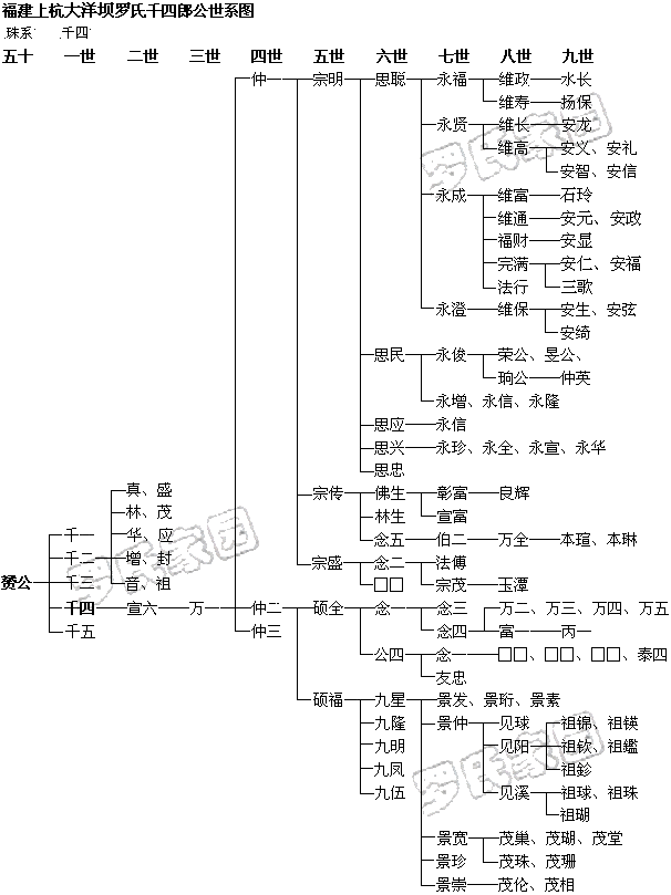 附:福建上杭大洋坝罗氏千四郎公世系图