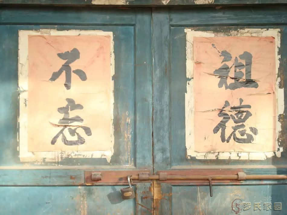 (邢邑由留村路氏祠堂大门上贴“不忘祖德”之祖训)