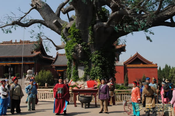 山西《洪洞县志》以及洪洞县《大槐树志》记载,明永乐年间,当地官府曾七次在大槐树左侧的广济寺集中泽、潞、沁、汾和平阳没有土地的农民以及人多地少的百姓迁往中原一带,并给所迁之民以耕牛、种子和路费。寺旁有一棵“树身数围,荫遮数亩”的汉槐。当地官府人员在树下为被移之民办理手续,登记造册,按所去地点编队,然后发给一应物品。