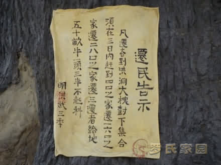 但这只是从大道理上说,而对当时被迁徙的每家每户来说却都是莫大的悲哀。明统治者定出的移民条律是“四口之家留一,六口之家留二,八口之家留三”,同姓同宗者还不能同迁于一地,好好的一家人便被拆得七零八散。