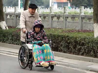 在古城道州,只要不是下雨,每天早晚人们都可以看见一位鹤发童颜的老人用推着他的老伴在濂溪河南北两岸的人行道上缓缓散步。他们偶尔暂停,推车的老人为他的老伴盖上滑落的毛毯,系上松开的纽扣,擦试脸上的尘埃……很多时候,他们是共赏河畔的风景、交流着彼此的心语,两人是那么地温馨融洽,那么地亲密和谐。他们每次散步少则两三个小时,多则四五个小时,每小时快则五到六里路,慢则三到四里路。日复一日,年复一年,这种情况在城区已经出现了整整十年,成了道州一道最美的风景。