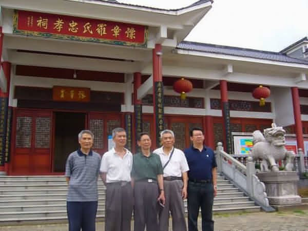 “豫章罗氏忠孝祠”留影(左至右:罗显初、罗时奇、罗树如、罗倩仪、罗 冰)。