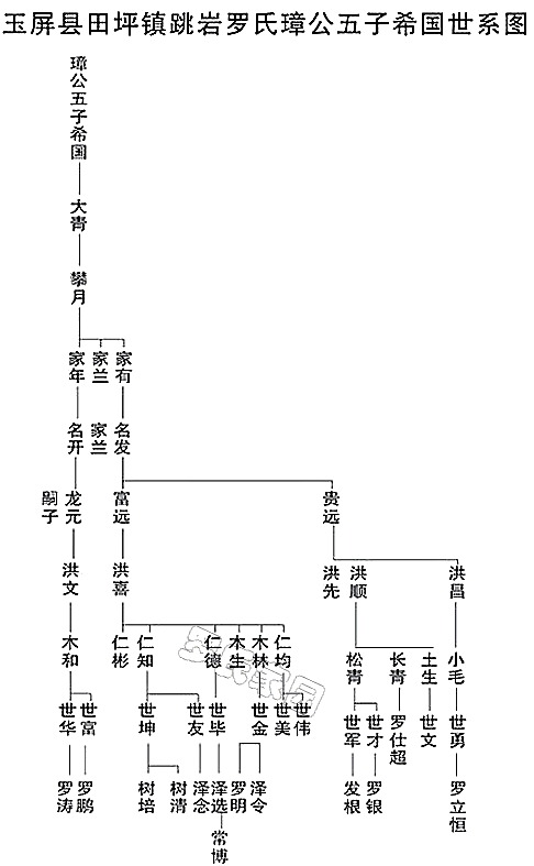 璋公妣刘氏,生子五:希忠、希武、希文、希重、希国,派分四大房。传至第五世名松→田远→洪春随娘出居湖南新晃大湾罗。本文belongto罗&氏家园