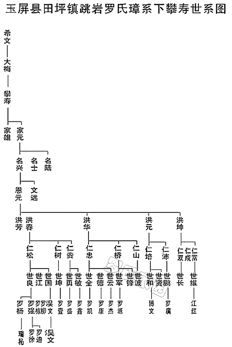 仁松次子:世江,配谭氏,生二子:罗栋、罗柳。