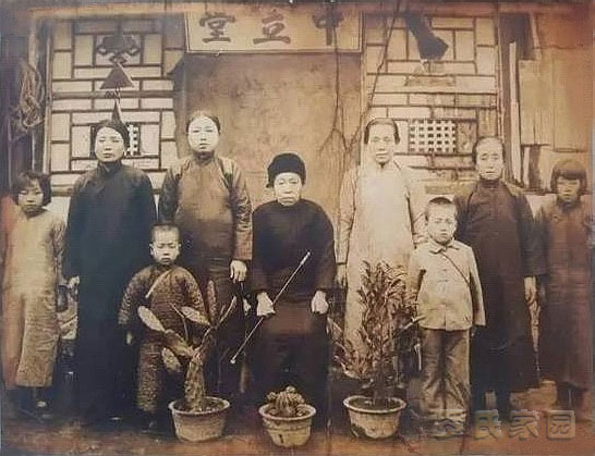 (罗曹氏带领家小在“中立堂”门前的合影照)