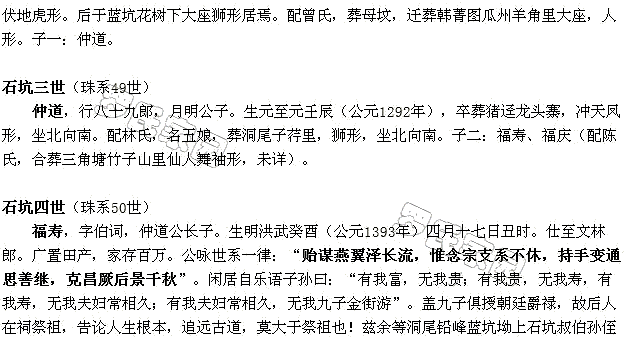 南宋十郎公因避乱迁徒至福建宁化县安溪:十郎→念七郎→万→吉、世、则;