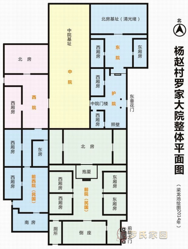 罗家一听不是善茬,只好退让了,一座院子后边留下了一块空地,屋墙生生拐进去一大块。(如下图)在院基这件事上,罗家算是退让了一步。