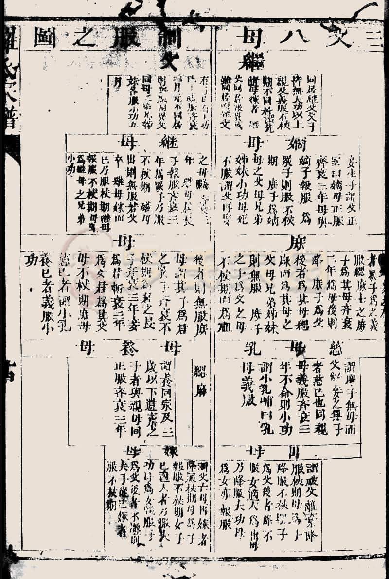 嫡母:妾的子女称父之正妻为嫡母。对于嫡母,服制是斩衰三年。(左图点击放大)