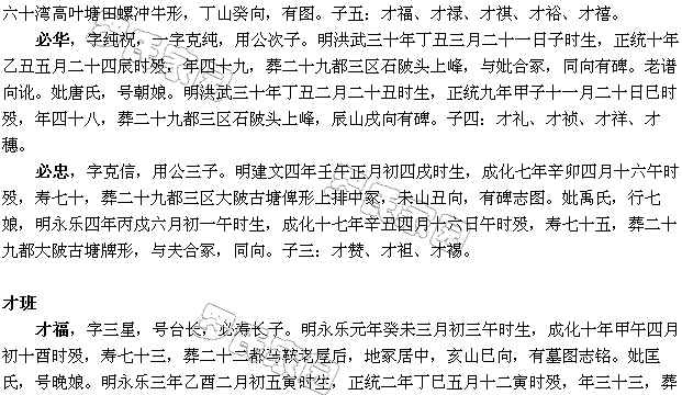 才祺,必寿三子。生殁葬妣失考。子一:贵璋。