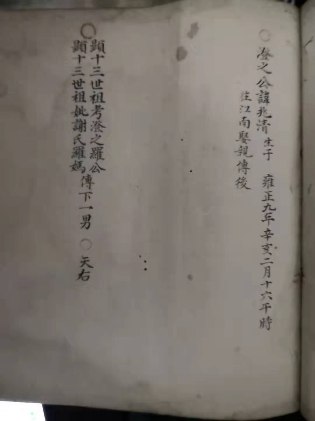 罗兆清,生于雍正九年,族谱记载其迁往江南娶亲传后(如图所示)。望其后人回乡认祖归宗,共续祖脉。