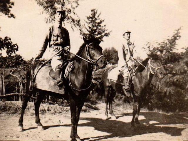 1946年8月13日罗义淮与五师政治部保卫科长张晓生合摄于山东掖县桑园(今莱州市三元镇)