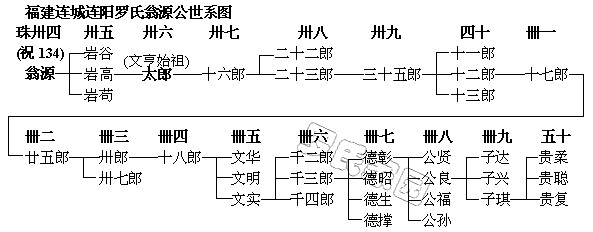 ㈢邵节公十三代裔万一公(即仲元公)为连城罗坊(岩头)罗姓始祖。